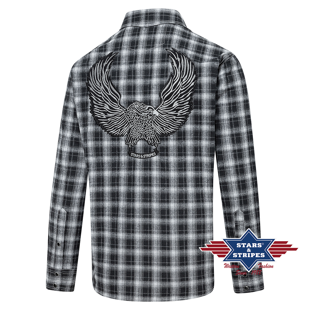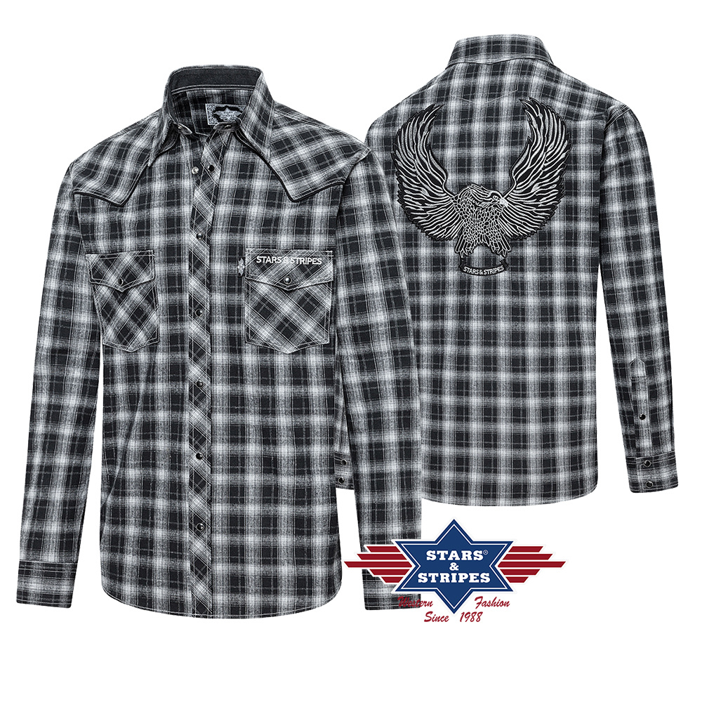 Stylová kostkovaná košile s westernovým sedlem a našitými náprsními kapsami. Design doplňuje lem límečku a stylové druky. Na zádech vyšívaný orel dělá z této košile úchvatný model.