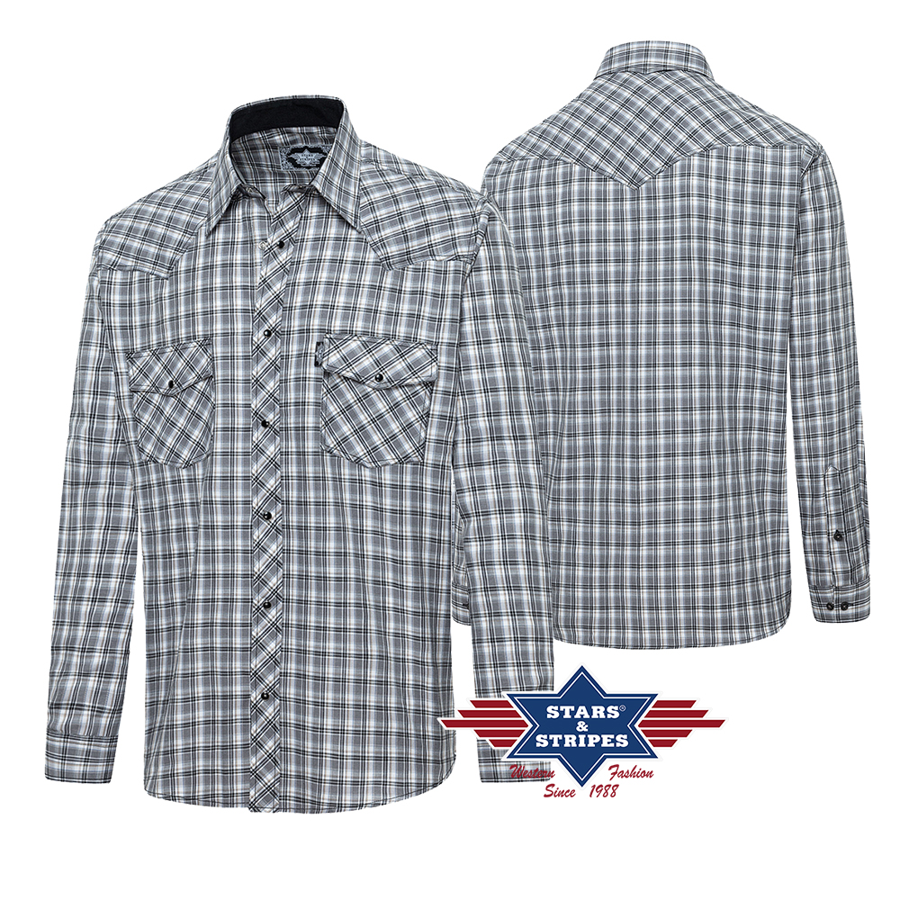 Stylová kostkovaná košile s westernovým sedlem a našitými náprsními kapsami. Design doplňuje látkový lem v límci. Dvojité zapínáni na rukávech umožňuje nastavení šířky manžet. Okrasné druky doplňují dokonalý vzhled košile.